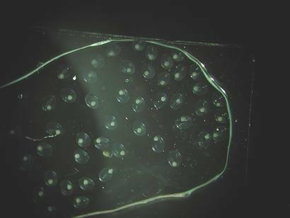 球形の殻状の中に肉眼でも確認できる0.5mm程の大きさ